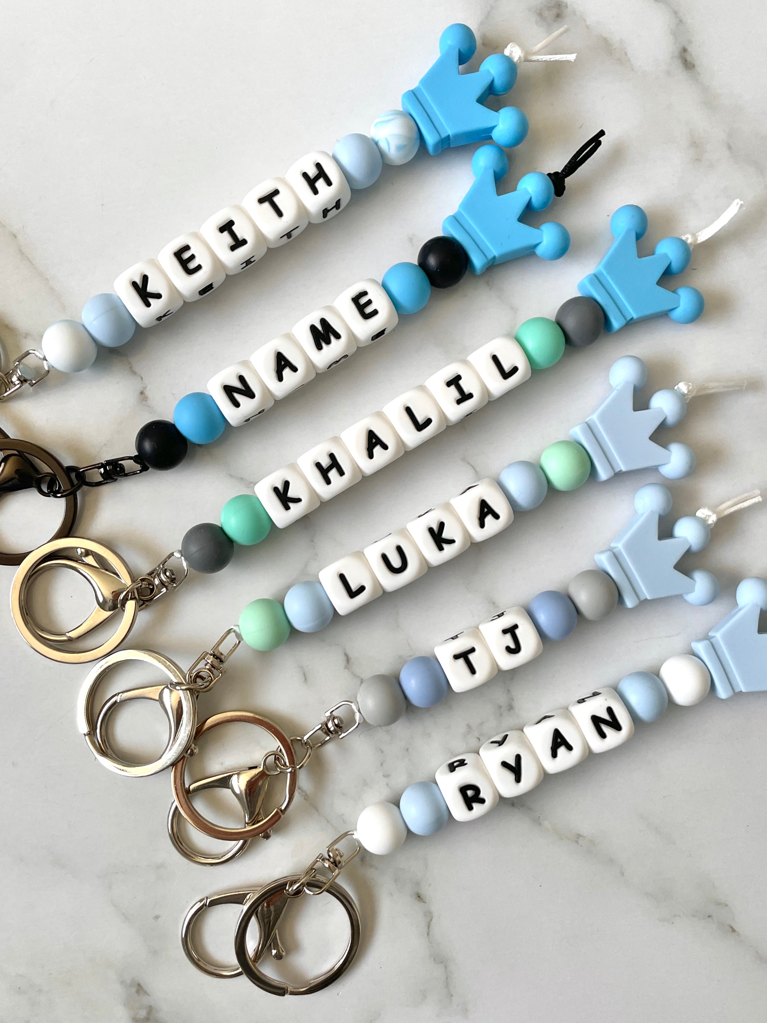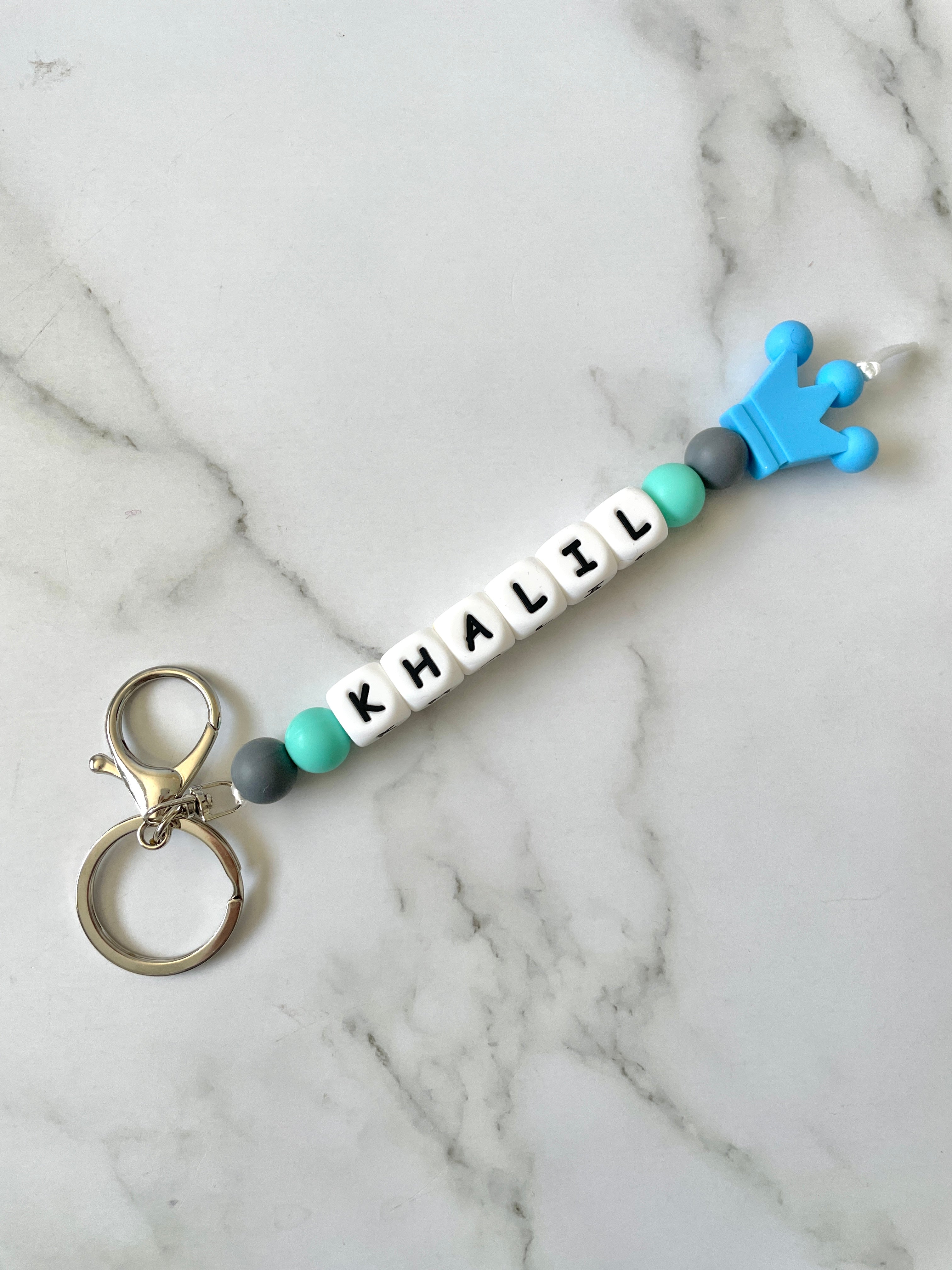 Please note that these keyrings only have 4 coloured beads in addition to the crown, there is no option to add any extra beads. Ensure you provide the correct spelling.