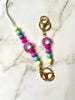 rainbow lanyard and keychain set pink/green